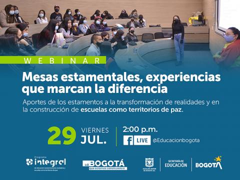 Este viernes 29 de julio, representantes de diferentes mesas estamentales de la ciudad conversarán por Facebook Live sobre sus experiencias en política pública educativa y la importancia de esta instancia de participación para las comunidades en la escuela.