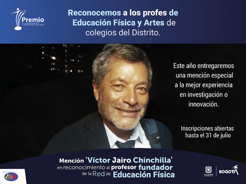 Producto de esta alianza, el premio otorgará una mención especial de reconocimiento, que resalta la labor y aportes del maestro Víctor Jairo Chinchilla Gutiérrez, nacido el 11 de junio de 1952 en Zipaquirá, y fue un destacado docente y líder en el campo de la Educación Física. A lo largo de su carrera, se dedicó incansablemente a crear y promover espacios de debate, participación y reflexión, buscando mejorar de manera significativa el sistema educativo.