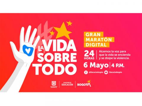 -El jueves 6 de mayo, a las 4:00 p.m., arrancaremos la primera gran maratón digital de la educación del país: #LaVidaSobreTodo. Durante 24 horas de transmisión ininterrumpida a través de las redes sociales de la Secretaría de Educación, las niñas, niños, jóvenes, maestras, maestros, familias y ciudadanos podrán expresar sus ideas y propuestas. La movilización virtual incluirá actividades artísticas y de reflexión permanente sobre la protección de la vida. Además, se llevará a cabo una ‘Velatón digital’, en memoria de todas las víctimas de los actos violentos ocurridos durante las movilizaciones.
