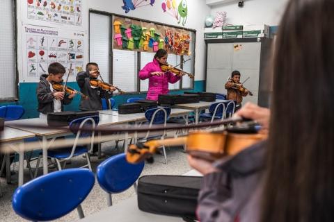 Conozca la historia de 45 niñas y niños que, al sur de la ciudad, han aprendido a deslizar con maestría el arco sobre las cuerdas de este vibrante instrumento, introduciéndose en el apasionante universo de la música clásica. Esta es la Jornada Completa de Bogotá: una política que está transformando realidades a través del arte.