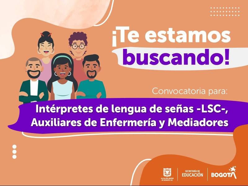 A esta convocatoria para los colegios públicos de Bogotá, se pueden postular intérpretes de Lengua de Señas Colombiana (LSC), auxiliares de enfermería y mediadores. Pueden enviar su hoja de vida a partir del 19 de febrero al correo vtorresm1@educacionbogota.gov.co