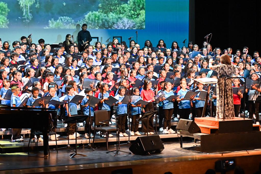 570 coristas se presentaron a las 4 de la tarde el domingo 25 de septiembre en el teatro Julio Mario Santo Domingo para presentar frente a cientos de personas un repertorio de 18 canciones, de las cuales 7 fueron estrenos mundiales.
