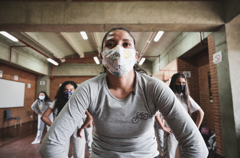 La clase de danzas de la profesora Liliana Gaitán se ha convertido en una catarsis para las y los estudiantes de grados 8, 9 y 11 de esta institución de Kennedy. Después de un año de virtualidad y confinamiento, regresar a la presencialidad ha sido un respiro para estos jóvenes que se gozan como nadie cada paso, movimiento y coreografía.